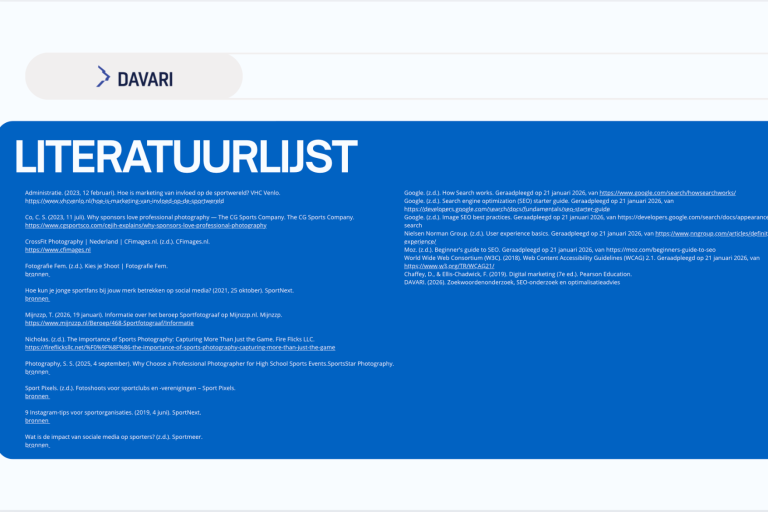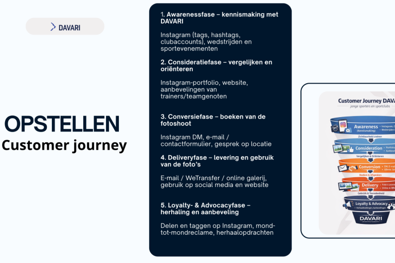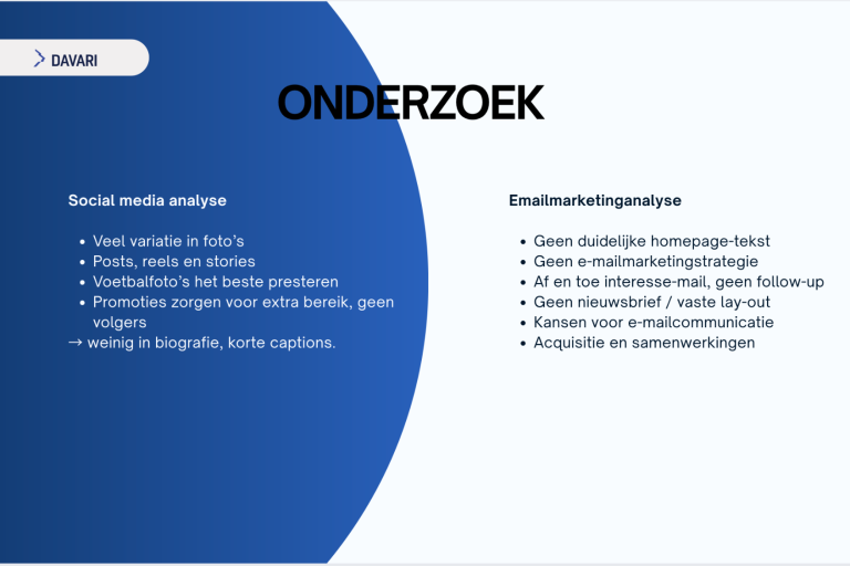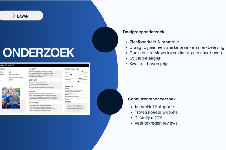 Online raadpleegt de doelgroep het Instagram-portfolio van DAVARI en de website davari.eu om een beter beeld te krijgen van eerdere opdrachten. Hierbij wordt gekeken of de foto’s geschikt zijn voor social media, clubwebsites en sponsorcommunicatie. Ook speelt prijs een rol, maar niet als doorslaggevende factor: de verhouding tussen prijs en kwaliteit is belangrijker dan de laagste prijs.