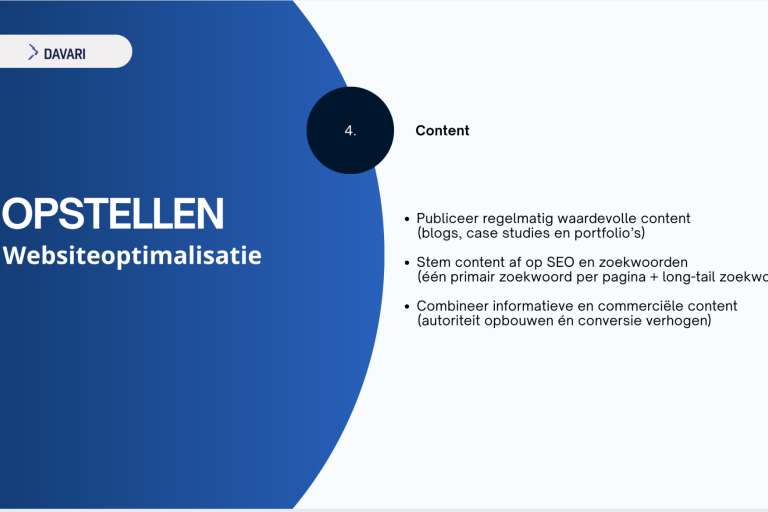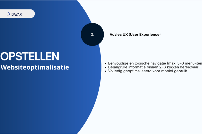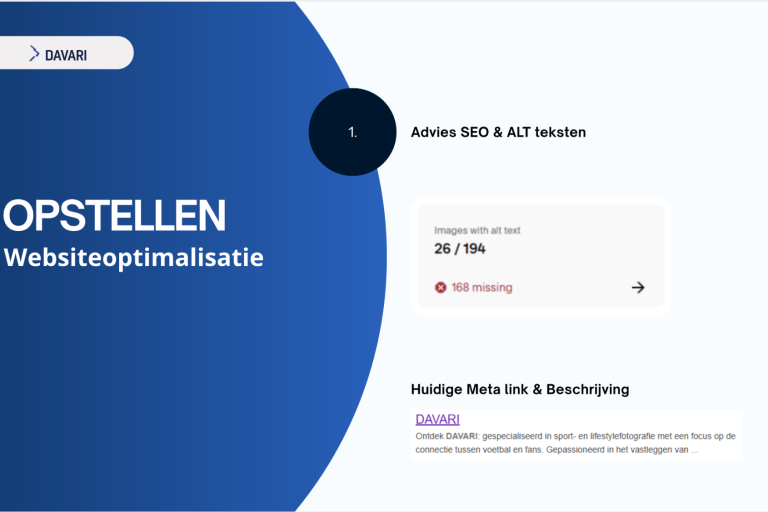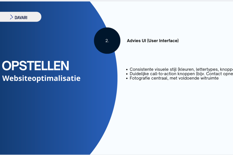 Wat opvalt, is dat DAVARI geen uitgebreide bedrijfstekst op de homepage heeft staan. Hierdoor blijft het voor bezoekers enigszins vaag wat het bedrijf precies aanbiedt en waarin het zich onderscheidt. DAVARI heeft tot nu toe alleen interesse mails gestuurd zelf. Dit betekent echter ook dat er kansen liggen om via andere communicatiemiddelen, zoals e-mail, duidelijker te communiceren over de diensten en de toegevoegde waarde van DAVARI.