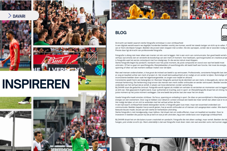 Offline worden de foto’s gebruikt voor drukwerk, sponsorpresentaties, posters, banners en teamruimtes. In deze fase wordt duidelijk of de foto’s voldoen aan de verwachtingen van kwaliteit, emotie en storytelling een belangrijk moment voor klanttevredenheid.