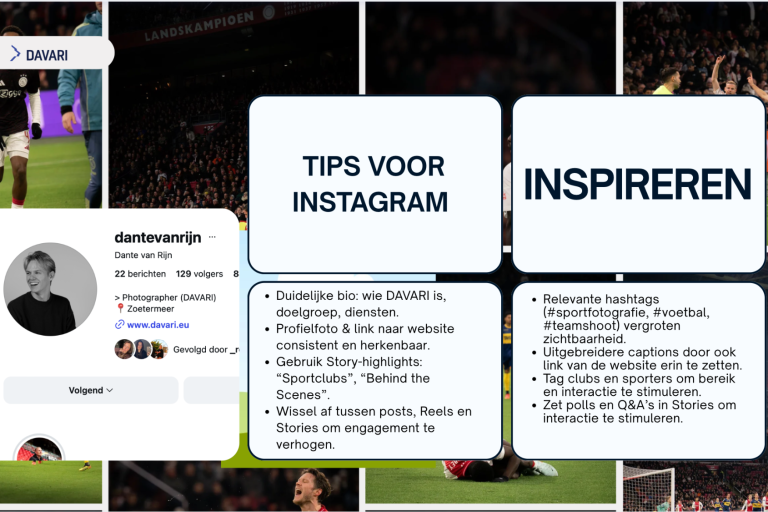 Het Instagram-account van @dantevanrijn functioneert als een visuele etalage van het werk van fotograaf Dante van Rijn en past daarmee goed bij zijn creatieve bedrijf DAVARI. Voor sporters en sportclubs is Instagram een van de belangrijkste sociale media-kanalen om zichtbaarheid te vergroten en een professionele uitstraling te creëren, omdat visuele content zoals foto’s en video’s hoog scoort op interactie en betrokkenheid. Uit onderzoek blijkt dat platforms zoals Instagram populair zijn onder jongere doelgroepen, waaronder Gen Z sportfans, die dit soort content continu willen zien en gebruiken om op de hoogte te blijven of zichzelf te presenteren (Hoe Kun Je Jonge Sportfans Bij Jouw Merk Betrekken op Social Media?, 2021).